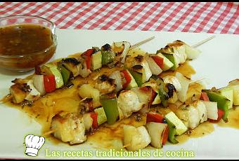 Para rematar estas brochetas también te dejo la receta de una salsa deliciosa, que aporte de aprovechar el jugo de la piña en conserva, es una salsa que parece que este hecha para acompañar carnes, así que prepara el pan que seguro que la salsa te hace mojar.