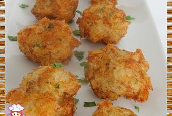 Prepara un puré de patatas con mantequilla y leche y añade el bacalao desmenuzado, la cebolla rallada, el ajo picado, el perejil, la levadura y las yemas de los 3 huevos.