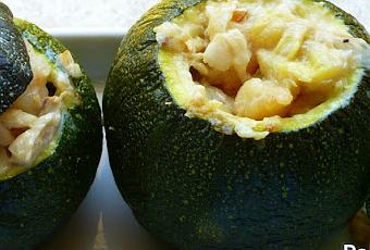 No siempre encuentro en el mercado los calabacines redondos, pero cuando los veo, difícilmente me resisto a comprarlos pues son muy tiernos y sabrosos. Pero a diferencia con sus primos los calabacines alargados que he preparado de muchas maneras diferentes, los redondos siempre los utilizo para comerlos rellenos. Por eso hoy os presento esta receta de calabacines rellenos de merluza y gambas, que espero os animéis a preparar.