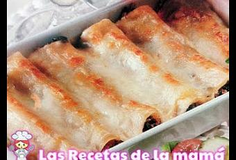 Las recetas de la mamá te recomienda que elabores estos magníficos canelones rellenos de carne y espinacas. Esta receta de canelones de carne y espinacas los puedes servir en la misma fuente de cocción, adornándolos en el último momento con hojitas frescas de albahaca.