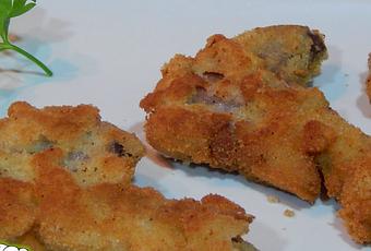 Las bañas el huevo batido y otra vez las rebozas en el pan rallado.