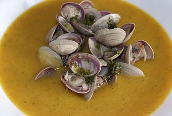 Servimos la crema de verduras con unas cuantas almejas, que regaremos con un poco del majado justo en el momento de llevar a la mesa. Seguro que más de uno te pide repetir.