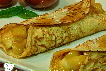 Lo mejor que tienen estas tortitas o crepes, es que puedes rellenarlas de lo que mas te guste, yo en esta ocasión he elegido la manzana, una de mis frutas preferidas y que suelen gusta a todos, para la preparación la he asado con un tipo almíbar de vino blanco aromatizado con canela, la verdad es que es un relleno ideal que también puedes utilizar para empanadas y tartas.