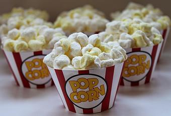 Mientras se enfrían los cupcakes coloque los bombones en un recipiente y agregue unas gotas de colorante amarillo y revuelva con las manos, de tal manera que queden los bombones con color blanco y amarillo simulando palomitas de maíz.Coloque el betún de vainilla encima del cupcake y encima poner los bombones.