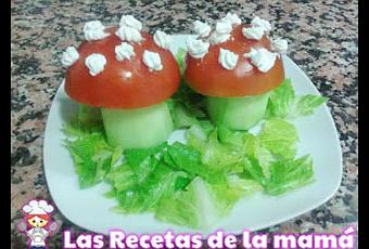 Las recetas de la mamá te aconseja que elabores esta nutritiva ensalada con forma de setas. Esta receta de ensalada con forma de setas está pensada para que los niños al mismo tiempo que comen verduras se diviertan comiendo.