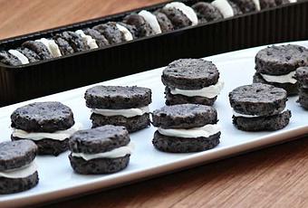 - Introducimos la crema de queso en una manga pastelera y vamos montando las galletas.