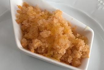Una vez tengamos el líquido hacemos un granizado con él. La forma sencilla, si no tenemos heladera, es colocarlo en un tuper en el congelador y cada hora, aproximadamente, removerlo con un tenedor, para darle la textura de granizado. Si en algún momento se nos queda demasiado sólido, podemos picarlo con el mismo tenedor para darle ese granulado característico.