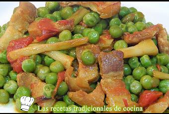 Esta receta de guisantes rehogados a la catalana la puedes encontrar elaborada de muchas formas, por ejemplo en lugar de ajos tiernos, con cebolleta tierna o con cebolla y ajos, también en lugar de panceta se suele utilizar morcilla o jamón serrano, bueno hay tantas y tantas formas de elaborar esta receta que tu elijes lo que quieras ponerle. Otra de las cosas que se le suele poner a los guisantes a la Catalana es un vasito de anís y una hoja de menta, yo he optado en esta receta en no hacerlo, aunque quedan muy bien, creo que el sabor de la menta se come a los demás ingredientes, pero bueno siempre puedes poner la menta y probar.