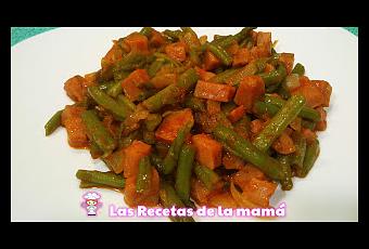 Las Recetas de la mamá te propone está Receta de judías salteadas con jamón y tomate, para que hagas un plato sano y muy sabroso.