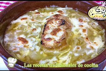 Esta receta de sopa de cebolla puede que la encuentras con algunos toques especiales, por ejemplo le puedes poner un buen chorro de vino blanco o de jerez, así le cambiaras un poco la cara a esta sopa. Uno de los toques que a mi me encantan es el del queso rallado, junto con el gratinado en el horno ya que hace que la sopa tenga un pinta increíble con esa cubierta crujiente. Bueno solo esperar que te guste esta magnifica sopa de cebolla, receta fácil de preparar, sana y con un sabor insuperable, que mas se puede pedir a una sopa.