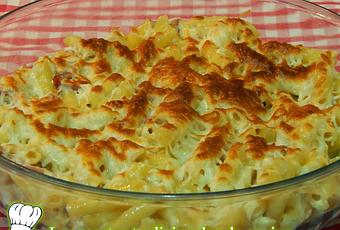 Retira la cazuela del fuego y echa los macarrones en una bandeja de horno.