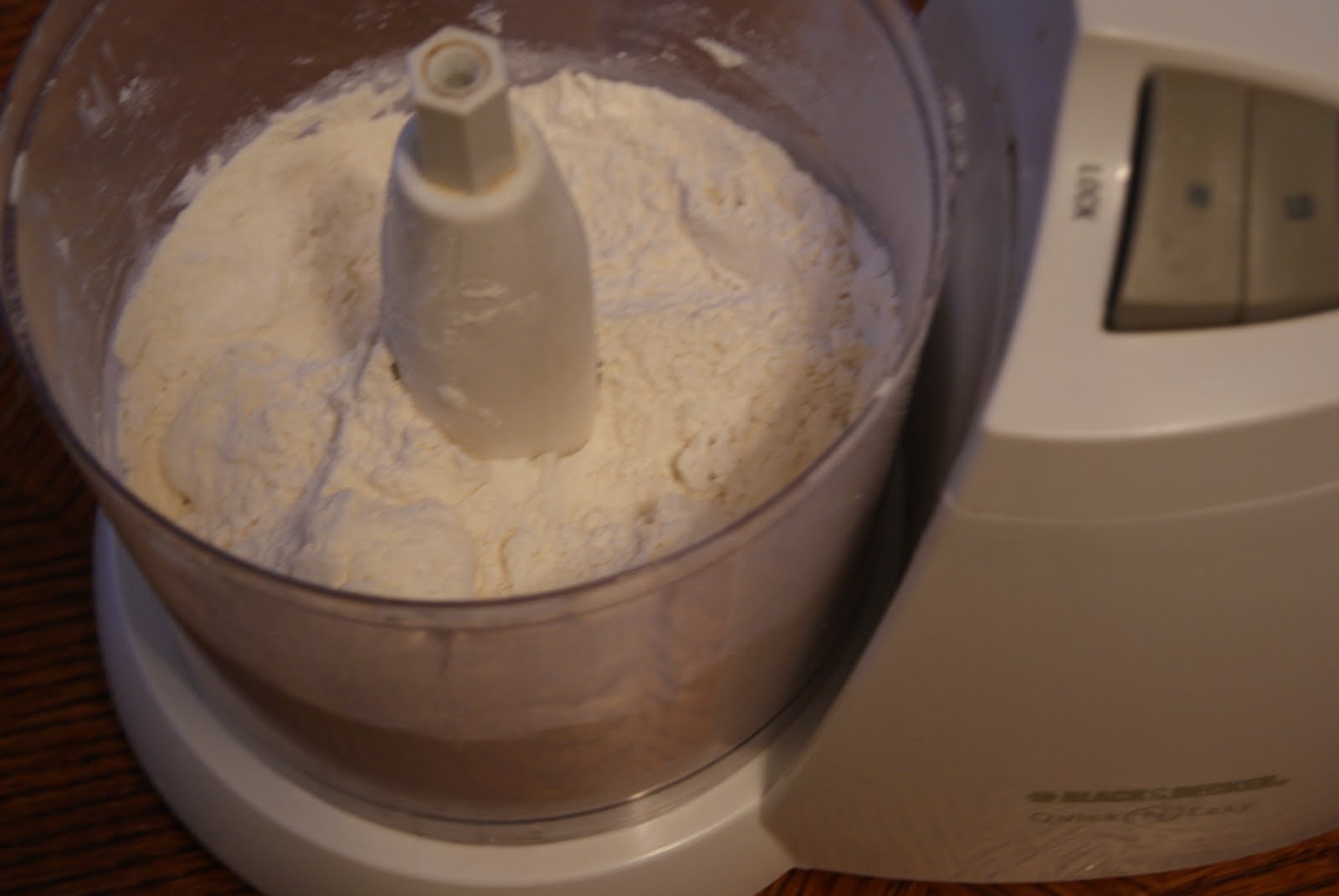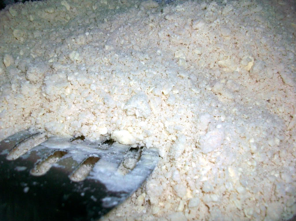 2 1/4 taza de harina, con las 4 cucharadas de mantequilla fría, y la sal.