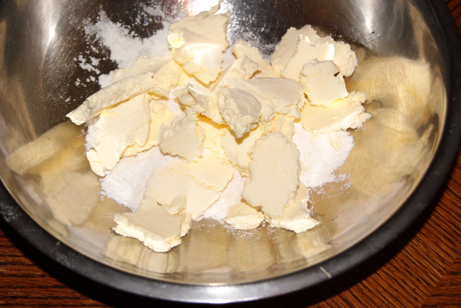 2 1/4 taza de harina en un bol frío con las 4 cucharadas de mantequilla fría, y la sal mezclamos con un cucharón grande.