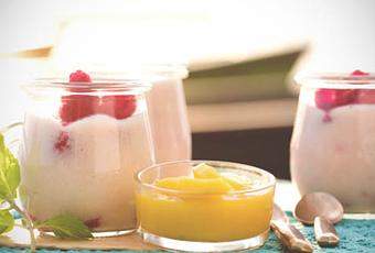 Ingredientes para Mousse de yogur y frambuesa y salsa de mango