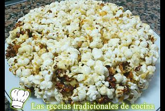 En el molde donde vayas a poner las palomitas lo untas un poco de aceite, para que cuando hagas la coca puedes sacarla.Prepara un plato de la misma medida para darle la vuelta y servirlas.