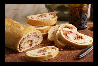 Se trata de un pan enrollado, que al ser cortado en rebanadas, muestra un espiral interior, relleno de jamón dulce, tocineta ahumada (bacon o panceta) junto con uvas pasas y aceitunas rellenas.