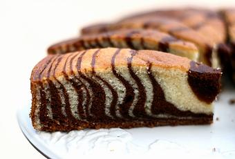 Dividir la mezcla en dos partes iguales, agregar a una la esencia de almendras y a la otra el cacao en polvo y el chocolate derretido. En el centro del envase refractario colocar 3 cucharadas de mezcla blanca e inmediatamente colocar 3 cucharadas de mezcla de chocolate, continuar sin detenerse alternando la mezcla clara y la oscura hasta completar. Importante: ¡no mover ni intentar distribuir la mezcla en el recipiente! él mismo se irá llenando progresivamente.
