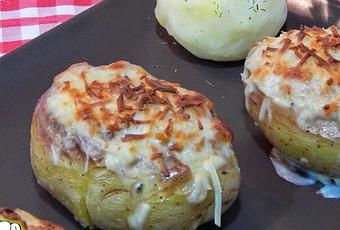 - La carne de las patatas que te ha sobrado la puedes salpimentar al gusto y servir como un puré de patatas, o hacer una bola poner un poco de queso rallado y gratinarlas al horno.