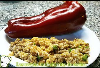 - El arroz se acaba de cocer con el jugo de los pimientos.