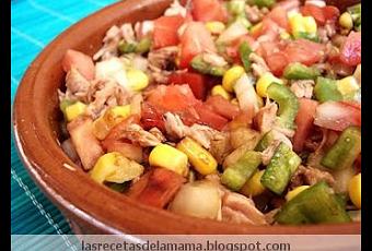 Lasrecetas de la mamá te aconseja que pruebes esta pipirrana compuesta porcebolla, tomate, pimiento, maíz y atún.