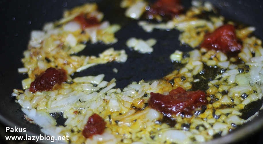 Cortamos el secreto de cerdo ibérico en pequeños cuadraditos, como se puede ver en la foto de los ingredientes, y los doramos en una sartén, esta vez sin aceite, para que suelte su propia grasa. Una vez dorados, los retiramos a un plato y en la grasa del secreto, hacemos la cebolleta bien picada, para que tome su sabor.Añadimos también la sobrasada ibérica, cortada en trocitos y damos unas vueltas hasta que se deshace.