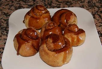 Cuando estén dorados sacamos la bandeja del horno. Regamos los rollos de canela con la salsa y dejamos enfriar por completo antes de servir.