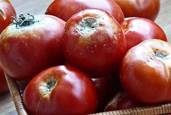 - Pelamos los tomates de la huerta, para hacer este paso más sencillo, les hacemos un corte superficial en cruz en el ‘culo’ y los escaldamos en agua hirviendo.