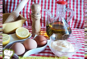 Elaboración tradicional en el mortero:En un mortero añades las yemas de los huevos, las claras las desechas, echas sal al gusto, el zumo del 1/2 limón y con la masa del mortero, le das vueltas siempre en el mismo sentido, si no se corta la salsa . Poco a poco le vas añadiendo aceite, un hilo de acetite, y veras como va cuajando, cuanto más la batas mas cuerpo le darás a la salsa.