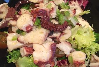 Me encanta el pulpo, aunque confieso que la mayoría de las veces en casa lo consumimos del que viene ya hervido y envasado al vacío. Es un resuelve que te saca de una cena en cuestión de nada y te evitas el tener que cocerlo, que no sólo implica el trabajo de hacerlo, sino que hay que hervirlo bien porque sino te arriesgas a que te quede “chicloso” e incomible. Hoy hacemos una ensalada de pulpo en vinagreta. Espero que os guste tanto como a mí.