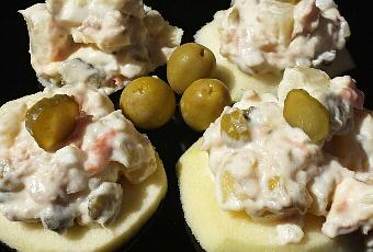 PatatasHuevosAceitunas sin huesoZanahoriasAtúnPepinillos agridulcesPepinillos en vinagreManzanaSalMahonesa