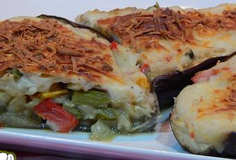 Las sacas del horno y ya tienes las berenjenas rellenas de verduras listas para servir.