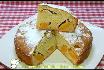 La elaboración es la de un bizcocho tradicional, que ya por si mismo es muy esponjoso, pero además esta relleno de melocotón el almíbar y piña en su jugo, lo primero es escurrir bien las frutas y cortarlas en trozos grandes, aunque también las puedes trocear mas pequeñas, si lo prefieres.