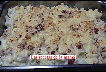La coliflor ya escurrida ponla en una cazuela de horno y por arriba la bechamel todo cubierto.