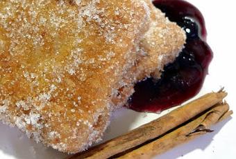 Cuando estén doradas, se sirven en una fuente espolvoreadas con azúcar glasé y canela. De esta manera ya estarían listas, pero para los más “atrevidos” las aconsejo flambeadas con un buen licor, le dan un toque especial.