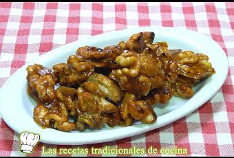La elaboración al contrario de lo que puedas creer, no se utiliza azúcar, en su lugar se usa miel que carameliza de igual manera y deja un sabor mucho mas intenso, además se aade un poco de mantequilla para que el camelo quede suave. Después tan solo tienes que echar las nueces sin cascara y removerlas hasta que se caramelicen.