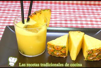 La elaboración es tan simple como echar la piña en el vaso de la trituradora, añadir el resto de ingredientes y triturarlo todo hasta que este bien picado.