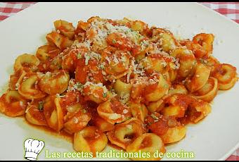 Después haz la pasta que prefieras, yo he optado por unos tortelinis secos rellenos de carne, pero tu puedes hacer espaguetis, tallarines, etc, los hierves hasta que estén cocidos, ahora los echas en la cazuela del salsa, escurridos y se cocina un par de minutos para que se mezcle todo bien.