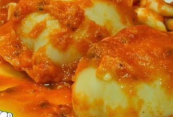 Procura que las sepias queden con la abertura hacia abajo, para que no quede salsa dentro sin cocinar.