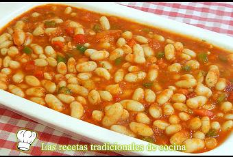 La elaboración se hace con alubias blancas ya cocidas, o en este caso en conservas lista para comer, recuerda quitarles el agua de la conserva y escurrirlas bien antes de usarlas, este tipo de legumbre la verdad es que son ideales para este tipo de platos rápidos y deliciosos, ya que tan solo tienes que hacer un pequeño sofrito, con unas pocas verduras añades las legumbres y las cocinas unos pocos minutos, ya tienes listo este gran plato de cuchara.