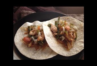 pimientos y las cebollas. Luego en una sartén agregamos un chorrito de aceite de oliva y sofreímos las verduras. Cuando estén bastantes hechas, añadimos las tiras de pollo y sobre ellas echamos parte del sazonador de fajitas. De ser necesario agregar sal y pimienta a gusto. Una vez este listo servimos sobre las fajitas. Podemos añadirles