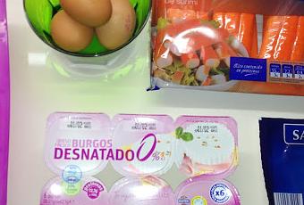 Cortamos los palitos de surimi a trocitos, los ponemos en un molde de silicona.