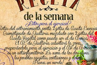 - Aceite Esencial de Gaulteria es un vasodilatador periférico y calentará la zona, preparándola para el ejercicio. Tiene propiedades de una “aspirina natural”, además de es un antiespasmódico y un antiinflamatorio a nivel muscular y articular.