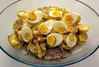 6. Take the dish from the oven and decorate with the hard-boiled eggs.