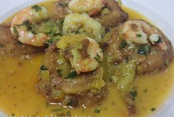 VARIACIONES: aunque las patatas a la importancia no llevan gambas inicialmente, se puede enriquecer el plato añadiendo, como en este caso, gambas, pero también se puede utilizar pollo y caldo de pollo o de verduras.
