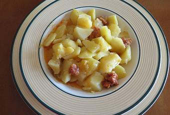 Las patatas con chorizo están en mi recetario porque vivimos unos años en Calahorra, La Rioja. Es un plato sencillo y rápido de hacer pero muy bueno y sabroso. Aunque todo depende del chorizo que utilicemos, claro. Seguro que todos tenemos nuestro preferido. Yo utilizo uno riojano que compramos en cantidad y congelamos para tener durante unos cuantos meses.