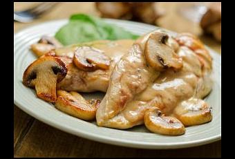 -Saltea las setas reservadas, salpiméntalas y sírvelas con las pechugas.