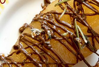 - Espolvoread un poco de romero sobre las peras y el chocolate.