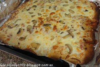 Está riquísima esta pizza, si todavía no la habéis probado intentad hacerla en casa porque de verdad que merece la pena^^En las siguientes fotos podéis ver como la nata queda cuajada gracias al huevo, al cortarla no cae la nata por los lados, es como preparar un quiche pero al estilo pizza :P