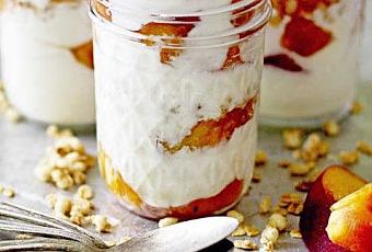 1 vaso pequeño yogurt sabor a melocotón o yogurt griego