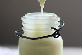 En una taza mediana mezcle todos los ingredientes. Hierva a fuego medio. Cocine a fuego bajo por dos horas revolviendo ocasionalmente para que no se pegue. Cuando la mezcla se haya reducido o se torne ligeramente dorada retire del fuego. Cubra con una toalla y deje reposar por 10 minutos. Almacene en un recipiente cerrado en el refrigerador. Puede que se solidifique en el refrigerador, cuando lo vaya a usar ponga en el microondas por 1 minuto.